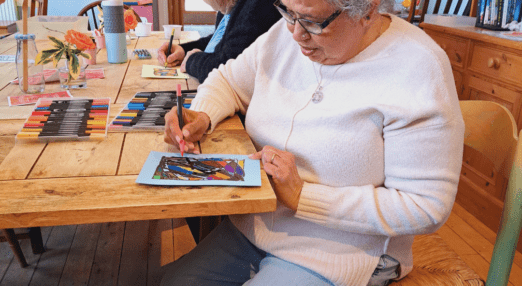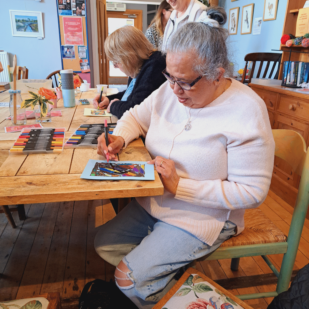 “I think this format of combining the chat and cuppa you get at a Compassionate Café with being creative is really beneficial. I really like the idea of CompassionART Cafés as they give people something to focus on while chatting.”