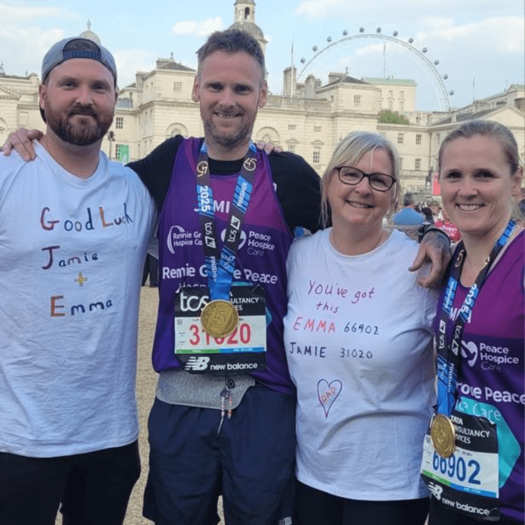 “We lost Dad in March [2024] and I think it was around June time that Jamie called me and said ‘I’ve had a great idea. We need to apply for London Marathon places with Rennie Grove Peace to raise as much money as possible to support them!’.