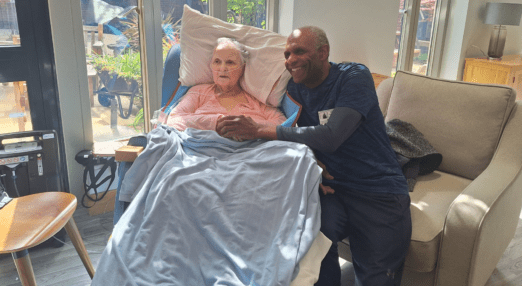 Watford legend and Rennie Grove Peace patron, Luther Blissett OBE DL, made a trip to the Peace Hospice building in Watford this week to visit lifelong Watford FC fan, Shirley, who is currently being cared for in the Inpatient Unit.