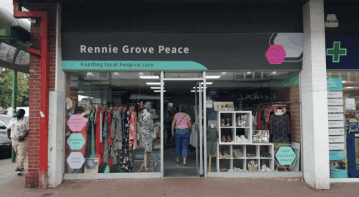 Find your nearest Rennie Grove Peace (formerly Rennie Grove or Peace Hospice Care) charity shop by entering your postcode or browsing through the list below.