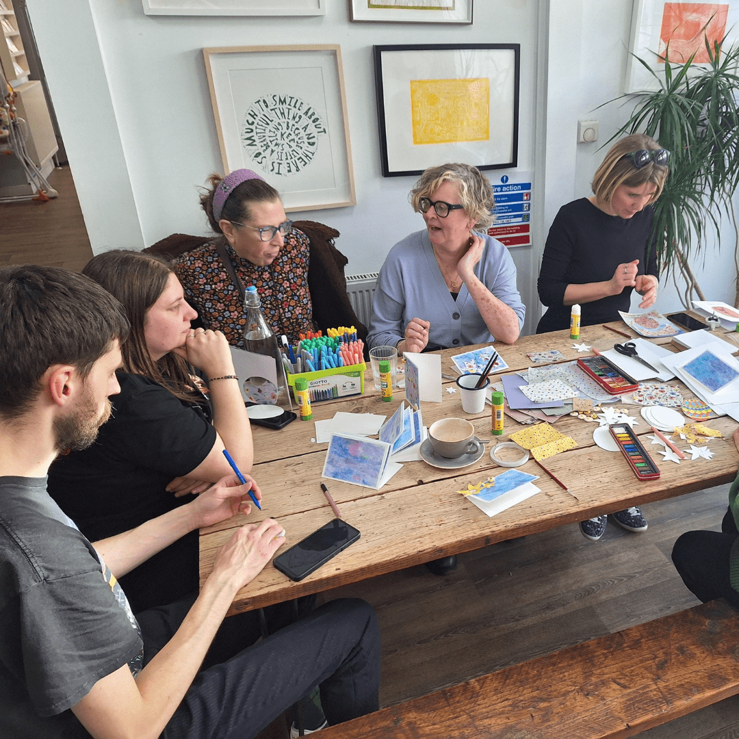 CompassionART Cafés are drop-in sessions that provide a safe space for people to come together and express themselves through art. They are aimed at anyone who has experienced bereavement and those who might be lonely due to illness.